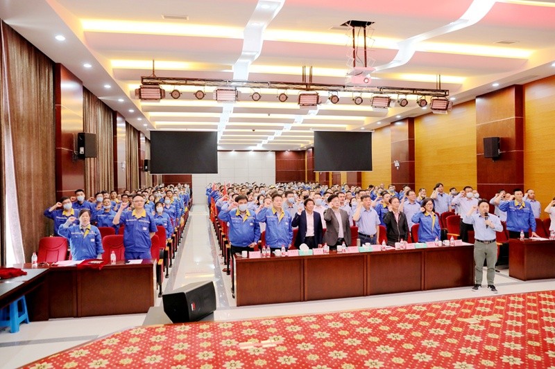 與會人員在公司副總經理魯富貴的帶領下,高舉右拳向大會莊嚴宣誓,用擲地有聲的口號展示出了每一個景興人實施和執行精益管理的信念與決心。宣誓姜本次大會的氣氛推向高潮,更加讓景興人在此刻再次凝聚士氣,奮發向上,讓團隊力量成為本次項目的向心力,彰顯出全體景興人對精益管理的昂揚斗志。
